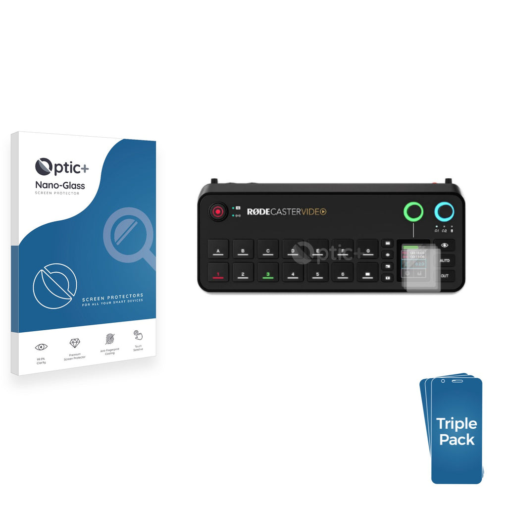 • Three Pack Optic+ Nano-Glass Screen Protectors for Rode Rodecaster Video